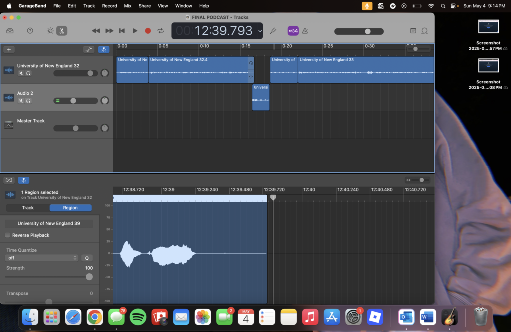 I wanted to include my top favorite podcasts into the final, which is why I chose the first ever interview with one of my classmates. It also gives a good baseline on how much I have improved over the year because it was my first ever podcast for the class. That podcast was very choppy and you could hear all of the cuts that I had in there. But in the end, I still think that the interview turned out well and the information was very valuable to gte to know my classmate. I then chose to include my first ever Audio Playground. This is because I also wanted to see my growth throughout my audio playground as well. My first problem that i had with this podcast is that i did not follow the criteria as much as I should have. There was mean’t to be a story with the episode and I completely ignored that part of the rubric, but I was still very happy about the way it turned out. I then included my second audio playground which was a story as a list. This one was fun for me to put together because all of the sound effects that I had used. Cripps told me that he loved that it was creative, and it made me love my work even more. The next one that made it into the episode was my outside walking tour. When making that episode I wanted to add some personailty to it, which is why it is so interactive. I loved this episode because when i presented it to the class everyone was laughing with me and it made me feel like I had lightened the mood on a Monday morning. The last podcast episode that i have included in the portfolio podcast is my interview with my father, Brian Dickhaut. I loved this podcast for many reasons. I loved to get to know more about my fathers job and also have a genuine conversation with him. Now that I am in college I do not se him as often, so it was nice to sit down and talk to him.